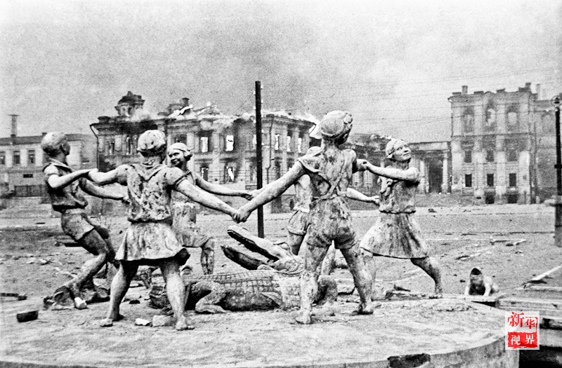 ↑苏联斯大林格勒的巴尔马列伊喷泉(1942年8月1日摄)。这座展示少先队员欢快舞蹈的喷泉坐落于伏尔加河畔战斗最激烈的地区,历经战火却奇迹般地保留了下来。
