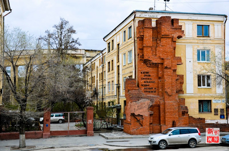 ↑如今巴甫洛夫大楼已经成为一处民宅,但仍保留一处断墙作为遗址并留有纪念的铭文(2015年4月23日摄)。