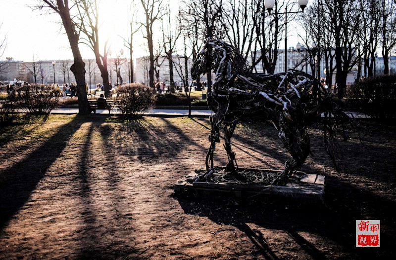 ↑莫斯科高尔基文化公园内的艺术品(2015年4月11日摄)。