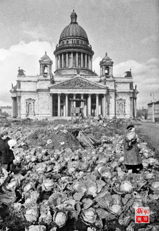 ↑在受围困的列宁格勒,人们在圣伊萨克教堂分拣白菜(1942年9月30日摄)。